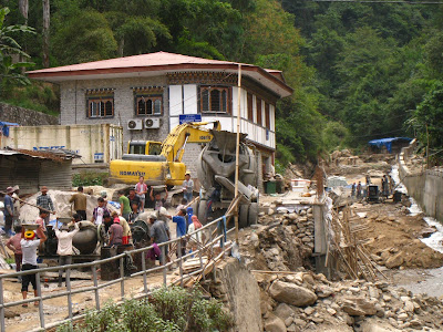 V meste Trashigang si pozrieme doobedu dzong z r. 1664, ktorý bol v r. 2014 vážne poškodený zemetrasením a teraz ho rekonštruujú. Väčšinu prác, ako nosenie kameňov, drevených klád a ich opracovanie, robia ženy. Chlapi sú prítomní tiež. Ale ako mnísi.